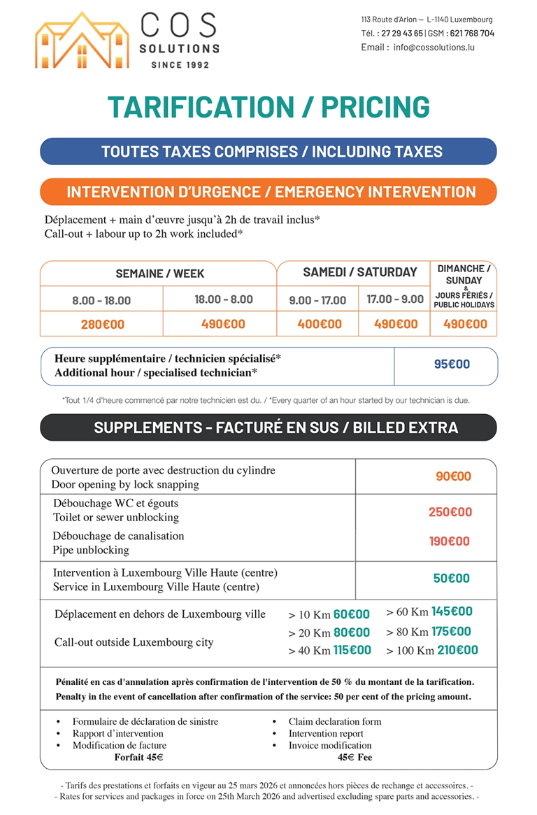 Service 24h/24 pour tous vos problèmes de volets roulants et électriques au Luxembourg.