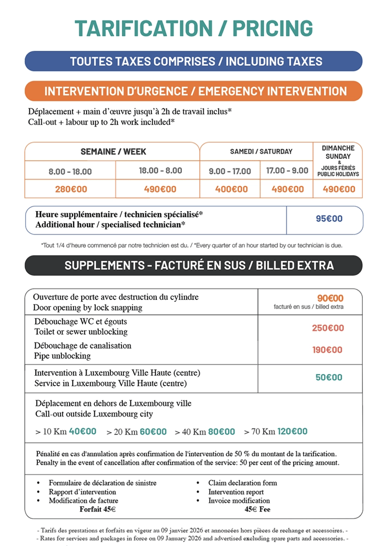 Service 24h/24 pour tous vos problèmes de volets roulants et électriques au Luxembourg.